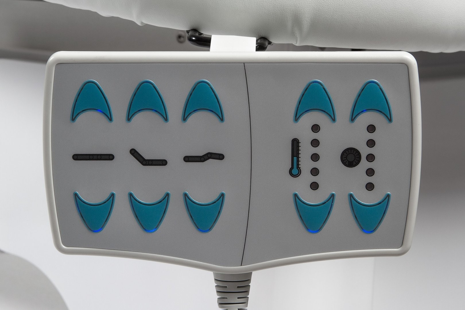 - Nach Abschaltung per Handbedienung senkt sich die Liege automatisch ab und geht in die waagerechte Position.