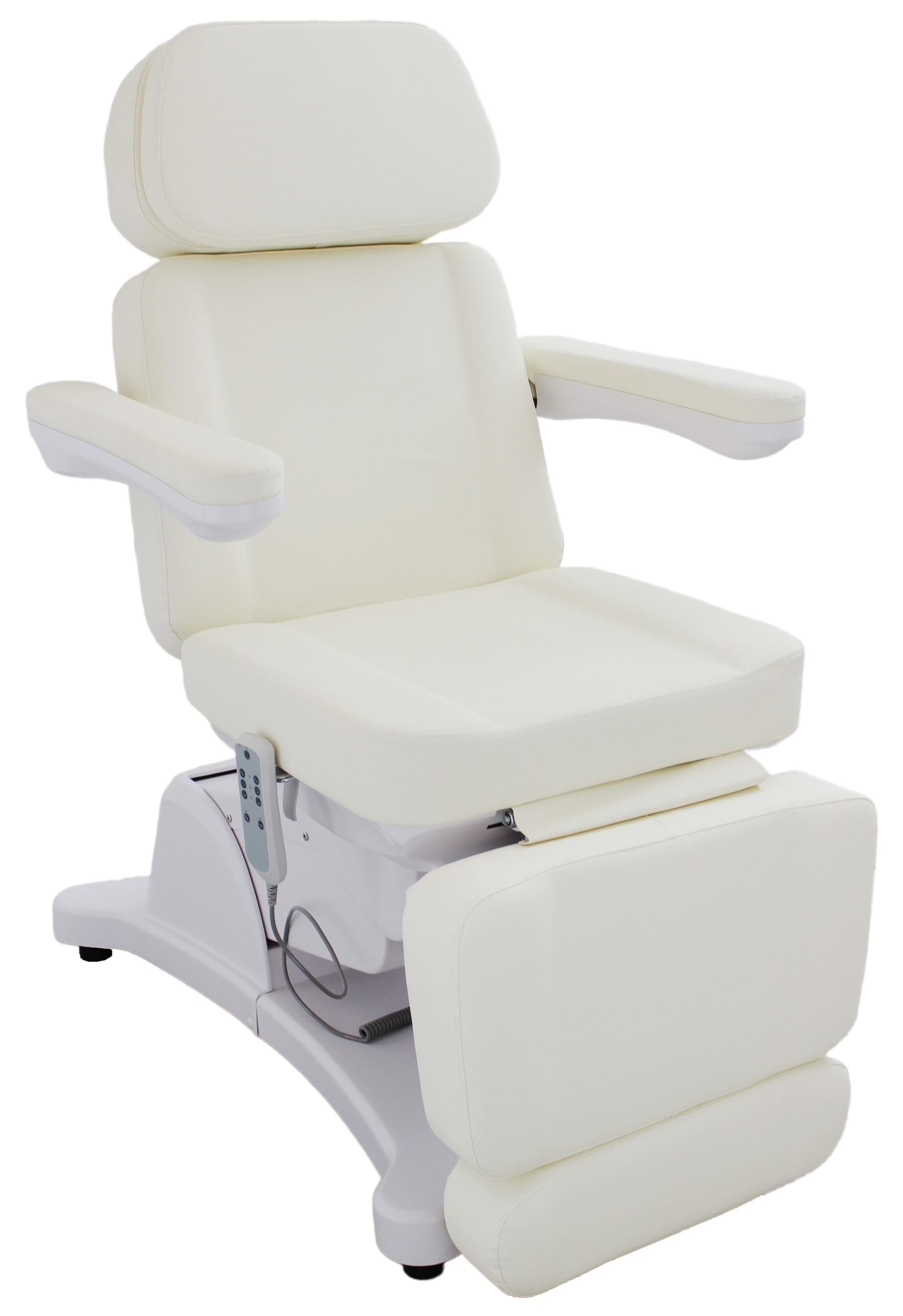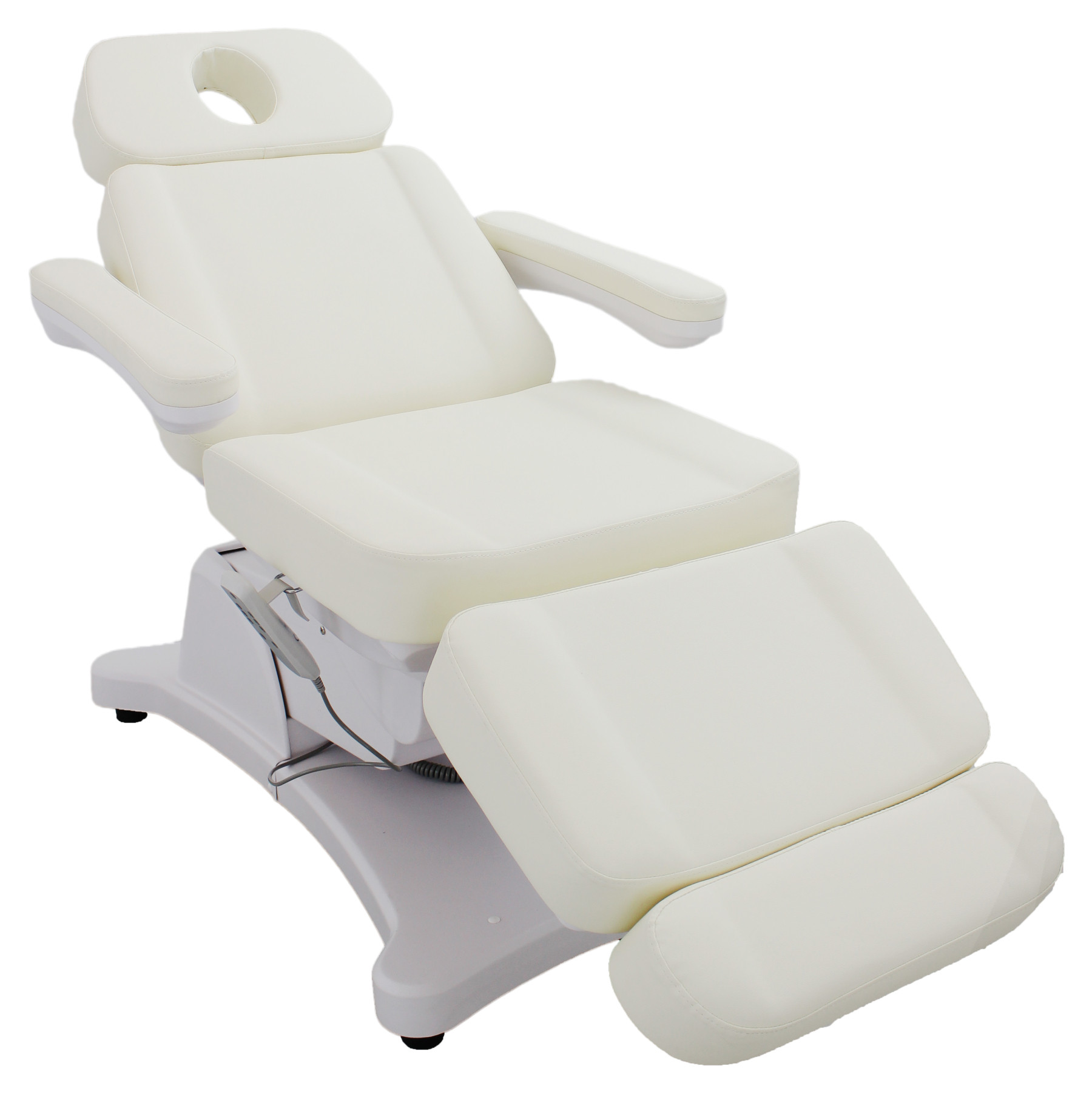 - Höhe, Neigung der Rückenlehne sowie Beinauflage sind über 3 kraftvollen Motoren per Handschalter verstellbar
